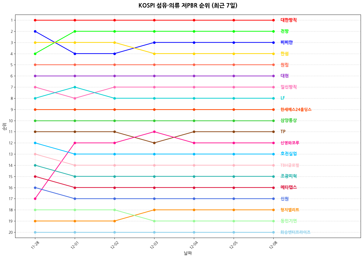 📊 섬유·의류 섹터 시가총액, 저PER, 저PBR, 현금유보율, 재무건전성 순위