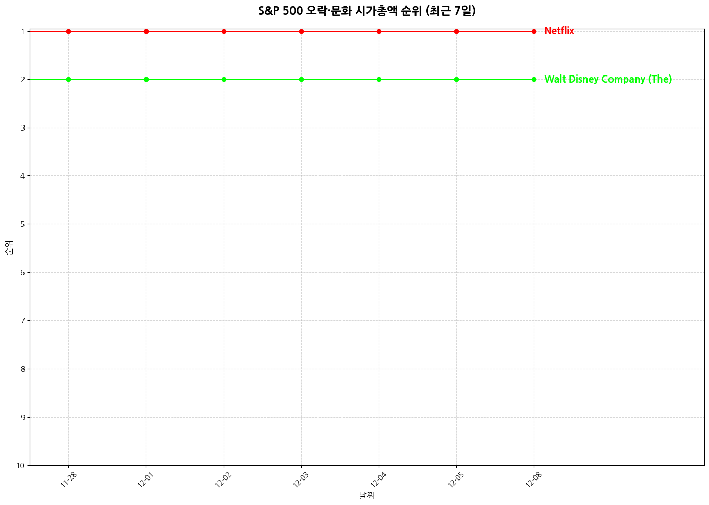 📊 S&P 500 오락·문화 시가총액 TOP 10 순위 변화