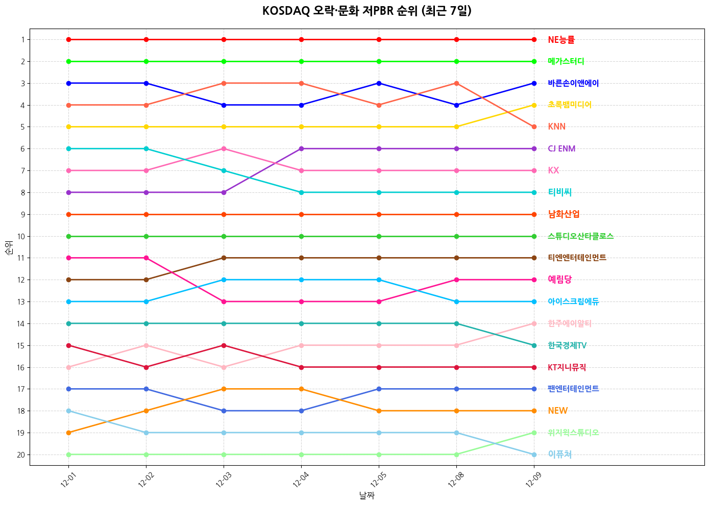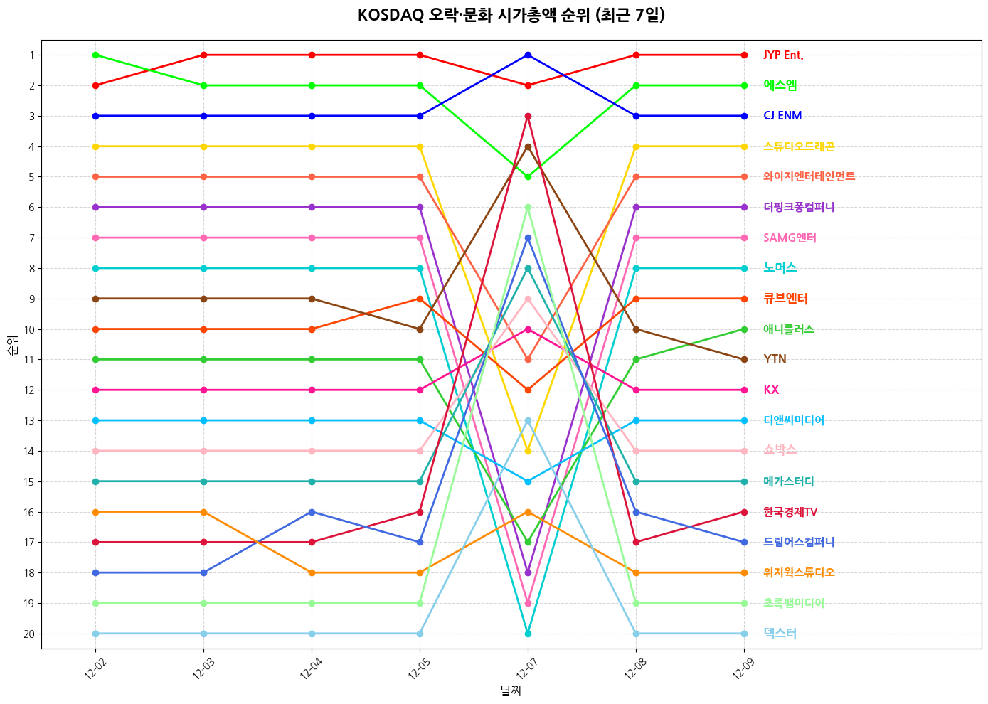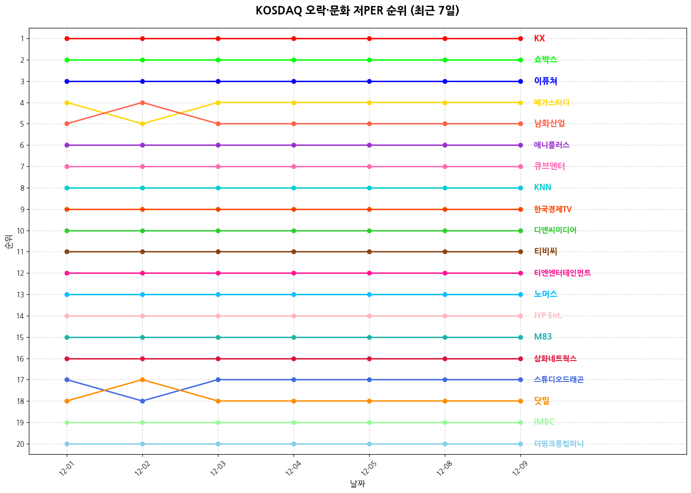 3️⃣ 코스닥 오락·문화 기업 순위 (성장주)