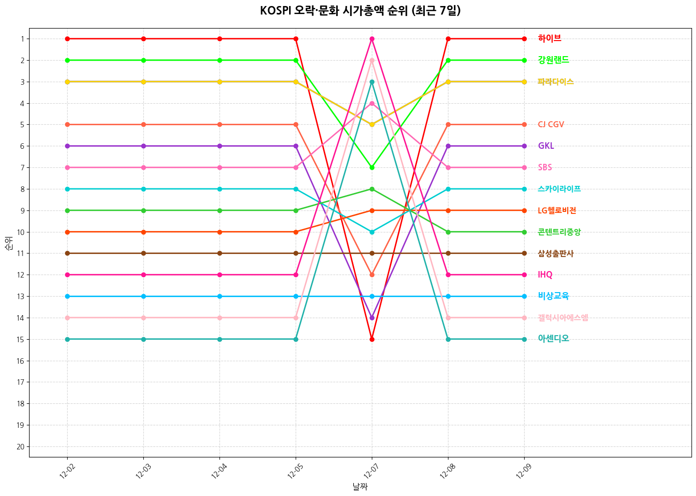 2️⃣ 코스피 오락·문화 기업 순위 (대형주)