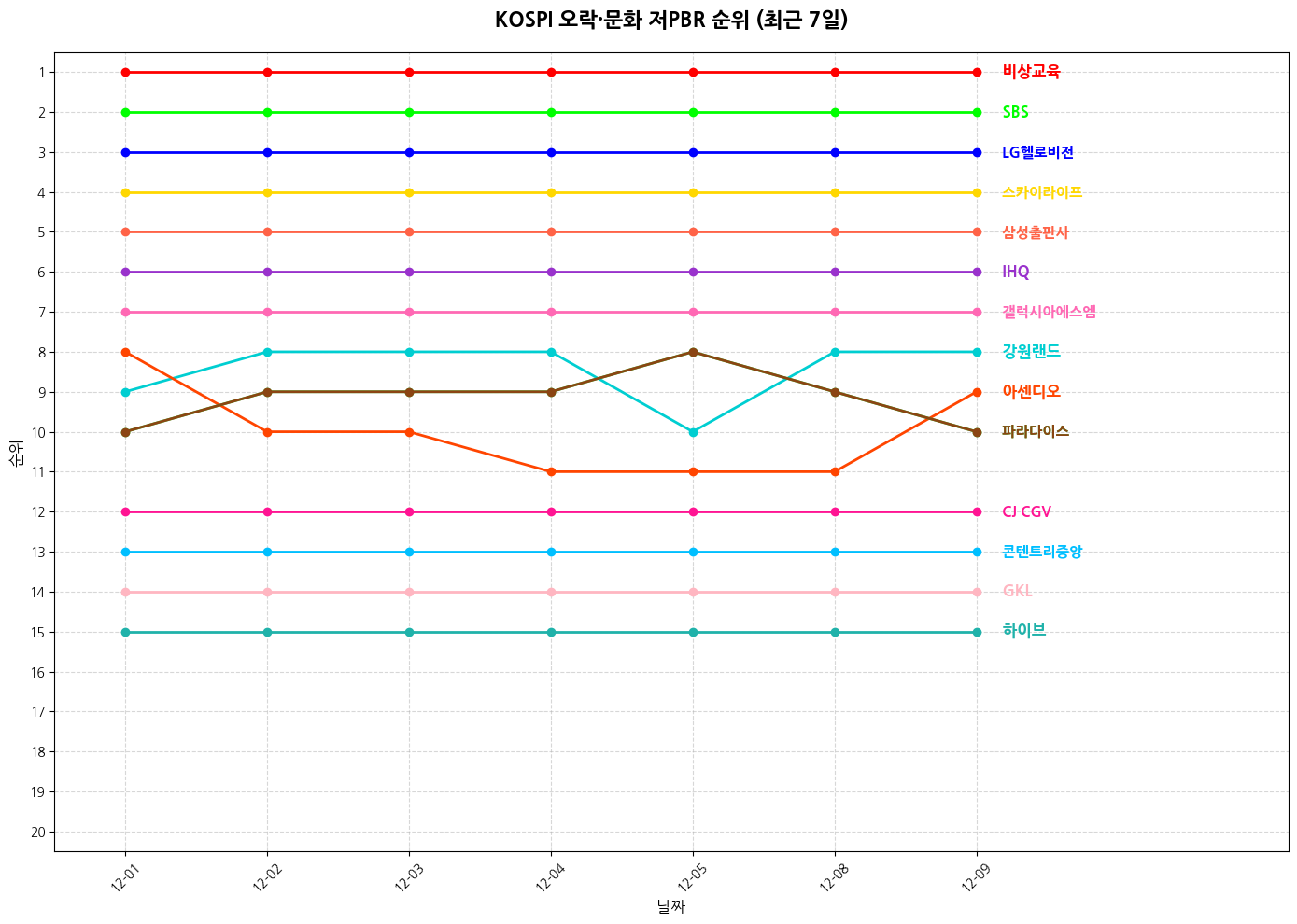 📊 오락·문화 섹터 시가총액, 저PER, 저PBR, 현금유보율, 재무건전성 순위