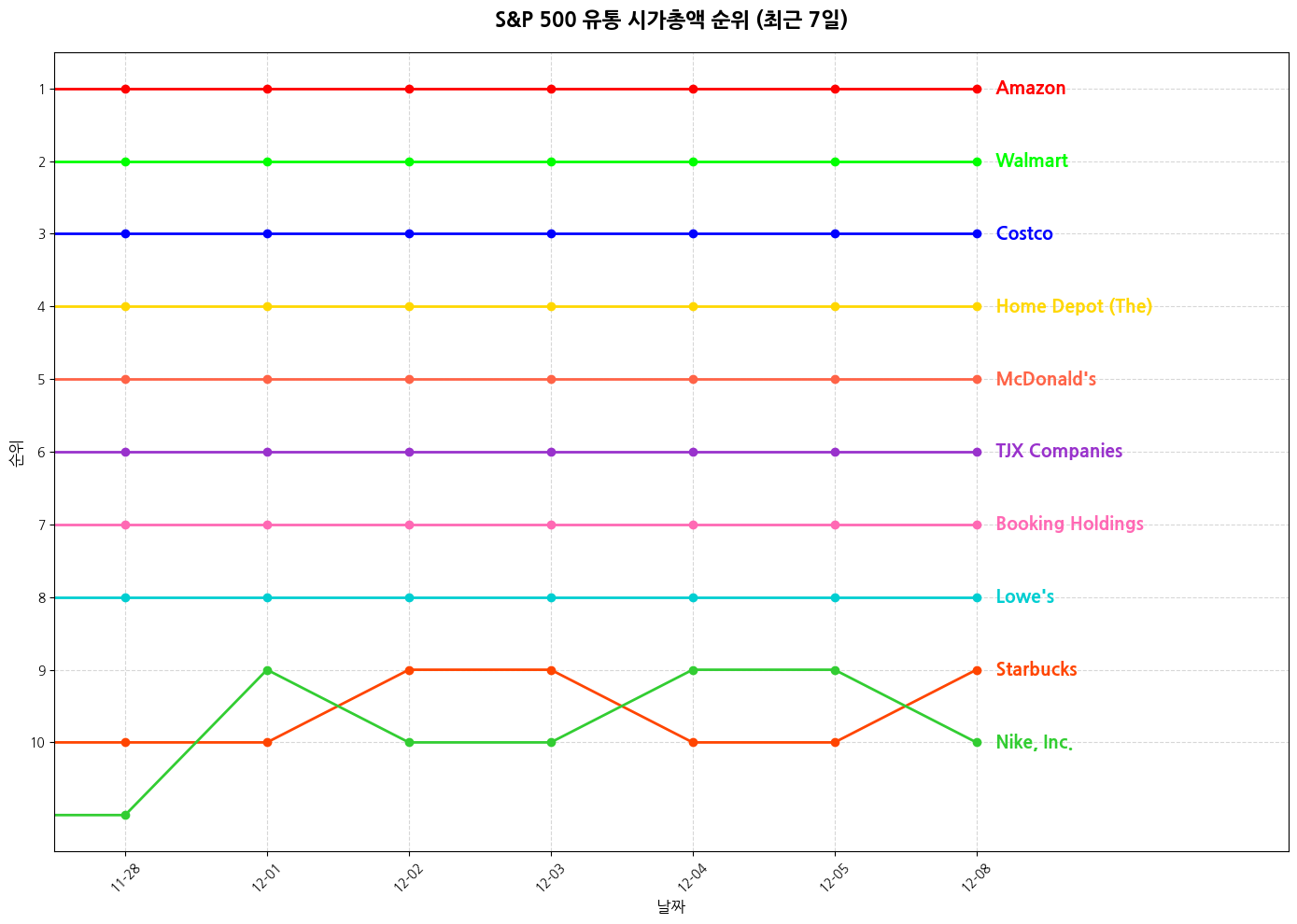 📊 S&P 500 유통 시가총액 TOP 10 순위 변화