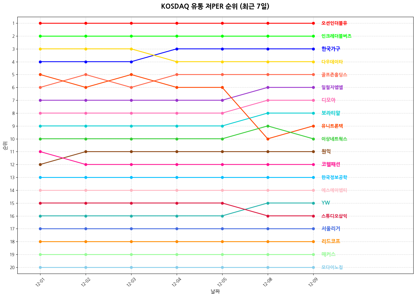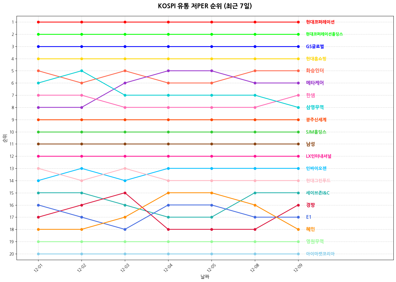 • 💎 저PER TOP 20 – 이익 대비 주가가 저렴한 종목들입니다. 가성비 좋은 투자처가 될 수 있어요