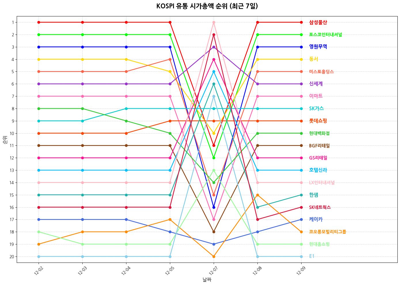 2️⃣ 코스피 유통 기업 순위 (대형주)