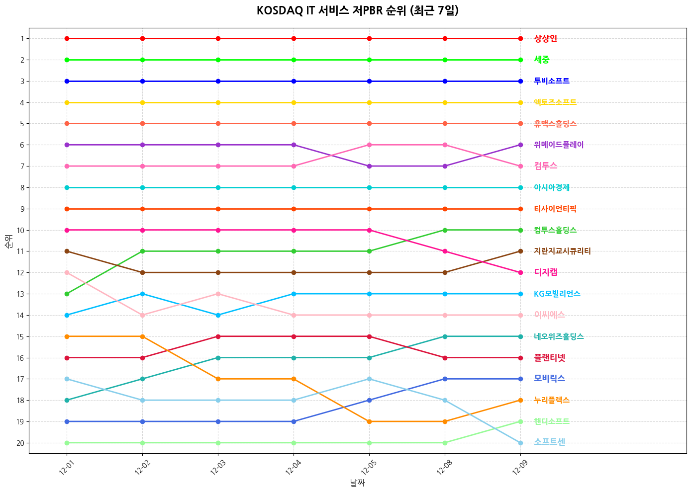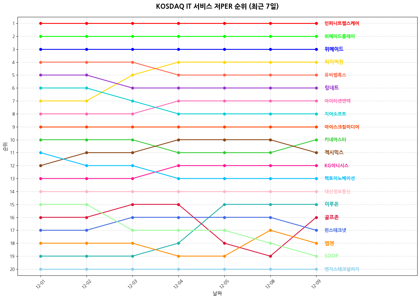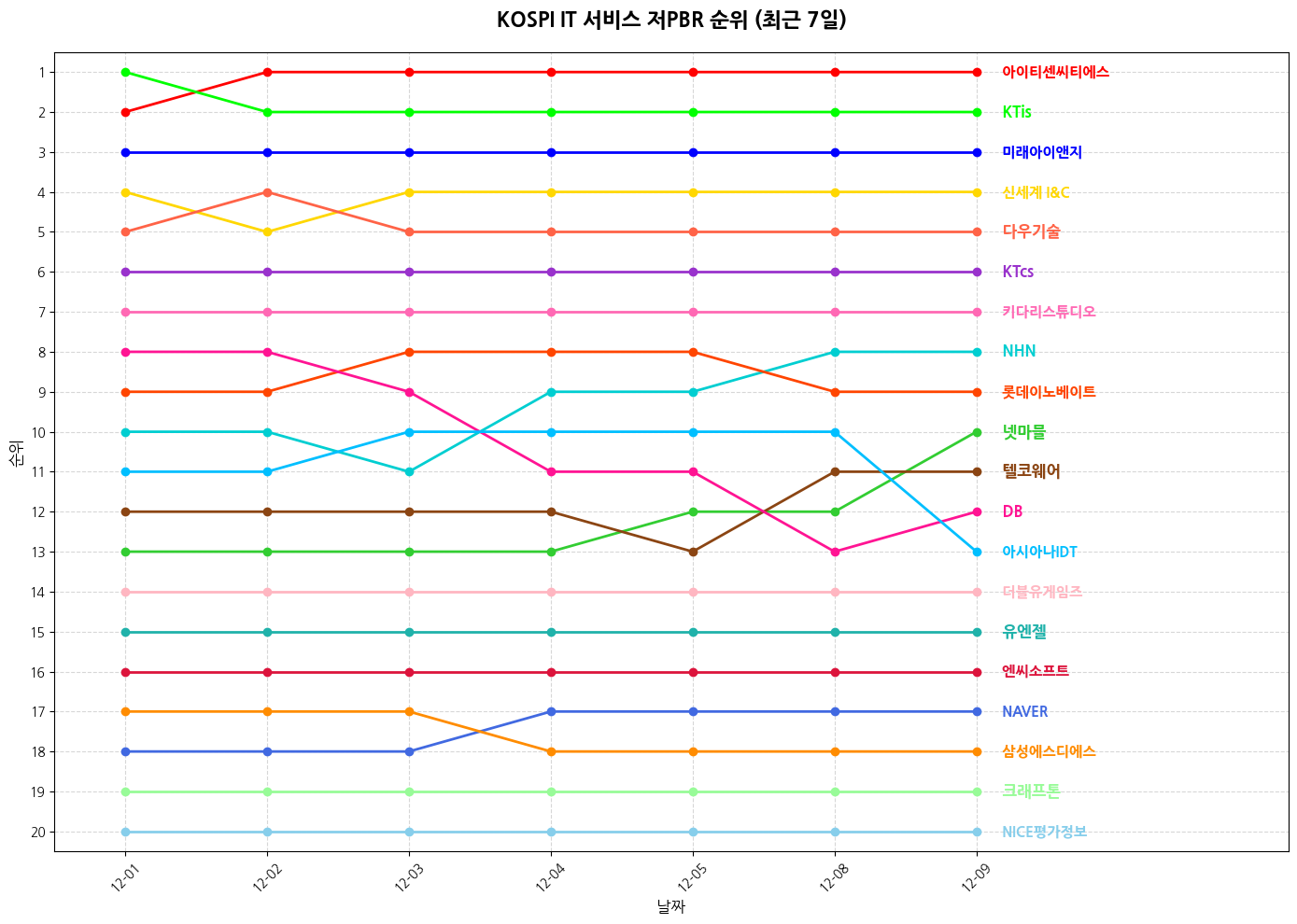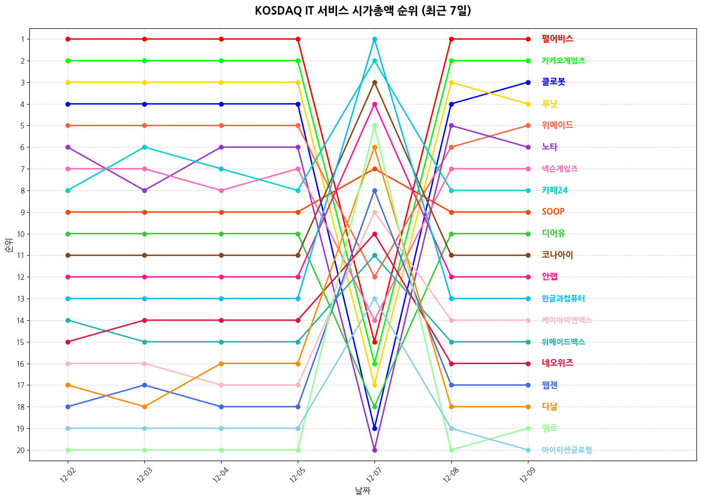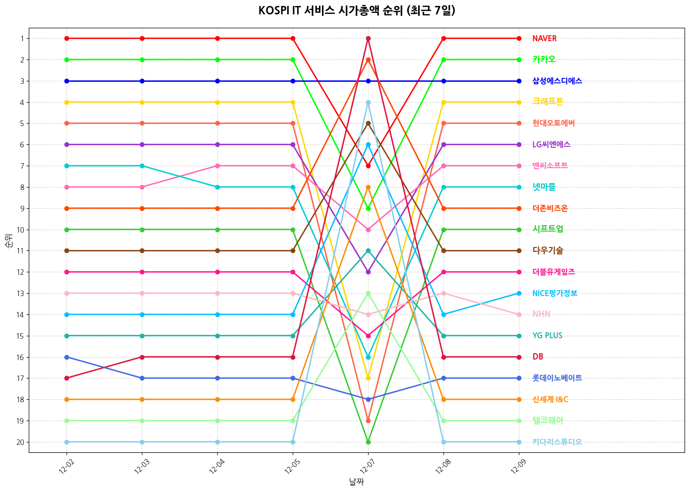 3️⃣ 코스닥 IT 서비스 기업 순위 (성장주)