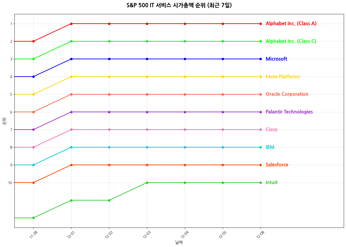 📊 S&P 500 IT 서비스 시가총액 TOP 10 순위 변화